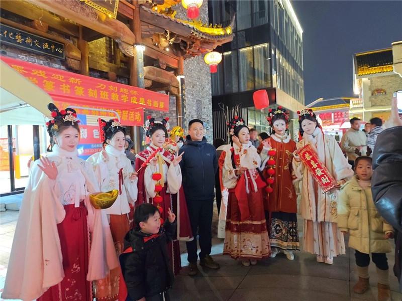 城市商圈同样人头攒动,成为消费新引擎。万达广场累计接待超55万人次;银泰百货累计接待47万人次,非遗周边产品销售额同比增长220%;山水奥莱跨市客群占比30%;文庙·锦城里累计接待7.02万人次,带动消费983万元。全市16个热门街区和商圈接待游客281.77万人次,实现旅游综合收入2.09亿元。城乡双向奔赴,让年味从城市蔓延到乡野,从景区延伸到街巷,构建起全域共享的春节氛围。