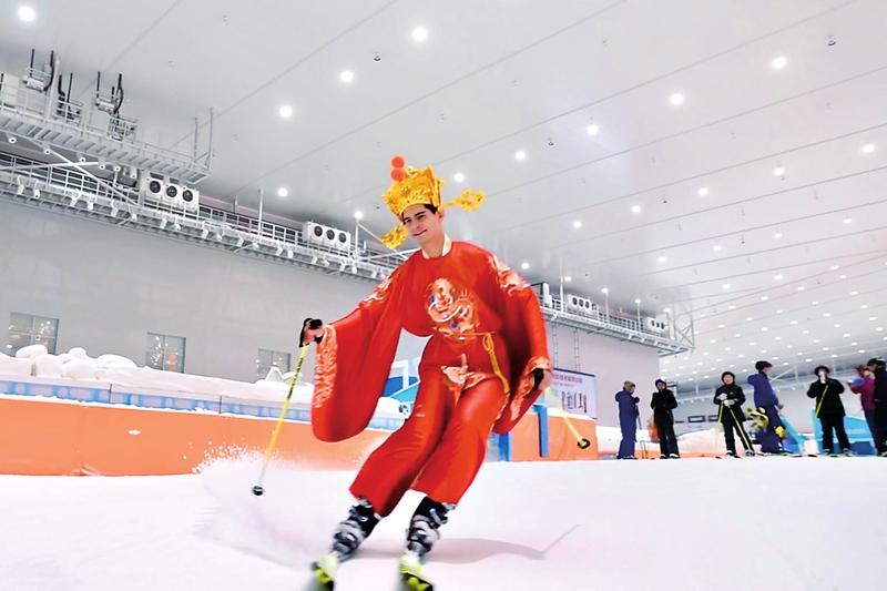 在甘露山国际滑雪场,来自俄罗斯的高颜值“NPC”(非玩家角色)艾力克斯体验“热雪沸腾”。图片来源:长江日报记者周超 摄